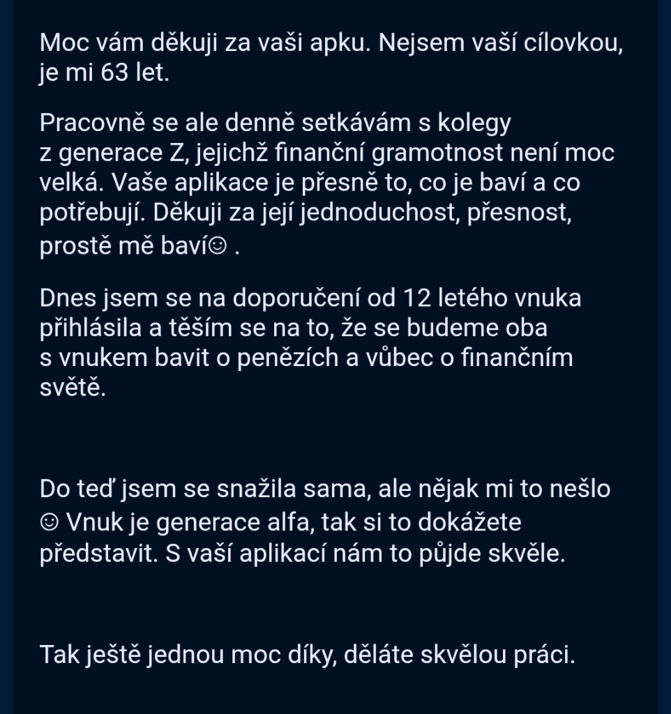 Webinář mě nakopl k první investici. Lektor všechno vysvětloval srozumitelně a na praktických příkladech. Díky webináři jsem ohledně investování rozhodně sebejistější. Rozhodně doporučuji.